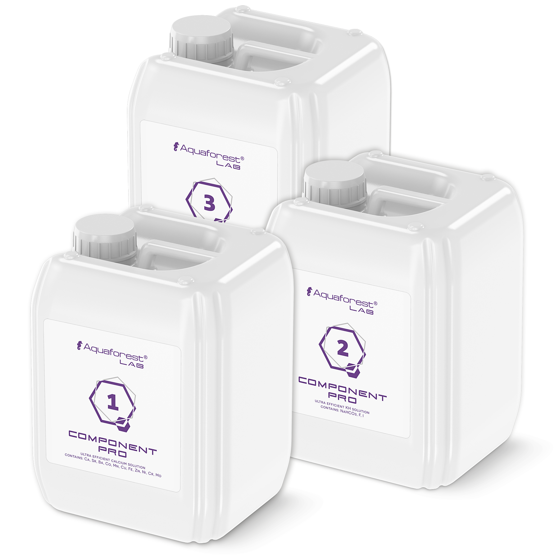 Dosage: All the fluids should be dosed equally based on Ca, KH and Mg consumption. Regularly test your water and establish the optimal dose basing on analysis results. With average SPS corals stock, the recommended Components Pro dose is 12 ml per 100 liters of water daily. When water parameters aren’t in the recommended range use one of the Aquaforest Lab additives (Ca Plus, Mg Plus, KH Plus) until reaching the desired levels. Component 1 Pro contains: Ca, Sr, Fe, Mn, Cu, Zn, Ni, Cr, Co, Mo (25 ml / 100 l raises Ca by 9 ppm). Component 2 Pro contains: HCO3-, F, I (25 ml / 100 l raises KH by 1.3 dKH – Alk 0.46 meq / l). Component 3 Pro contains: mineral salts, Mg, S, K, B, Sr, Li (25 ml / 100 l increases Mg by 0.76 ppm). Due to the high concentration of the product, we recommend regular maintenance of the dosing lines.