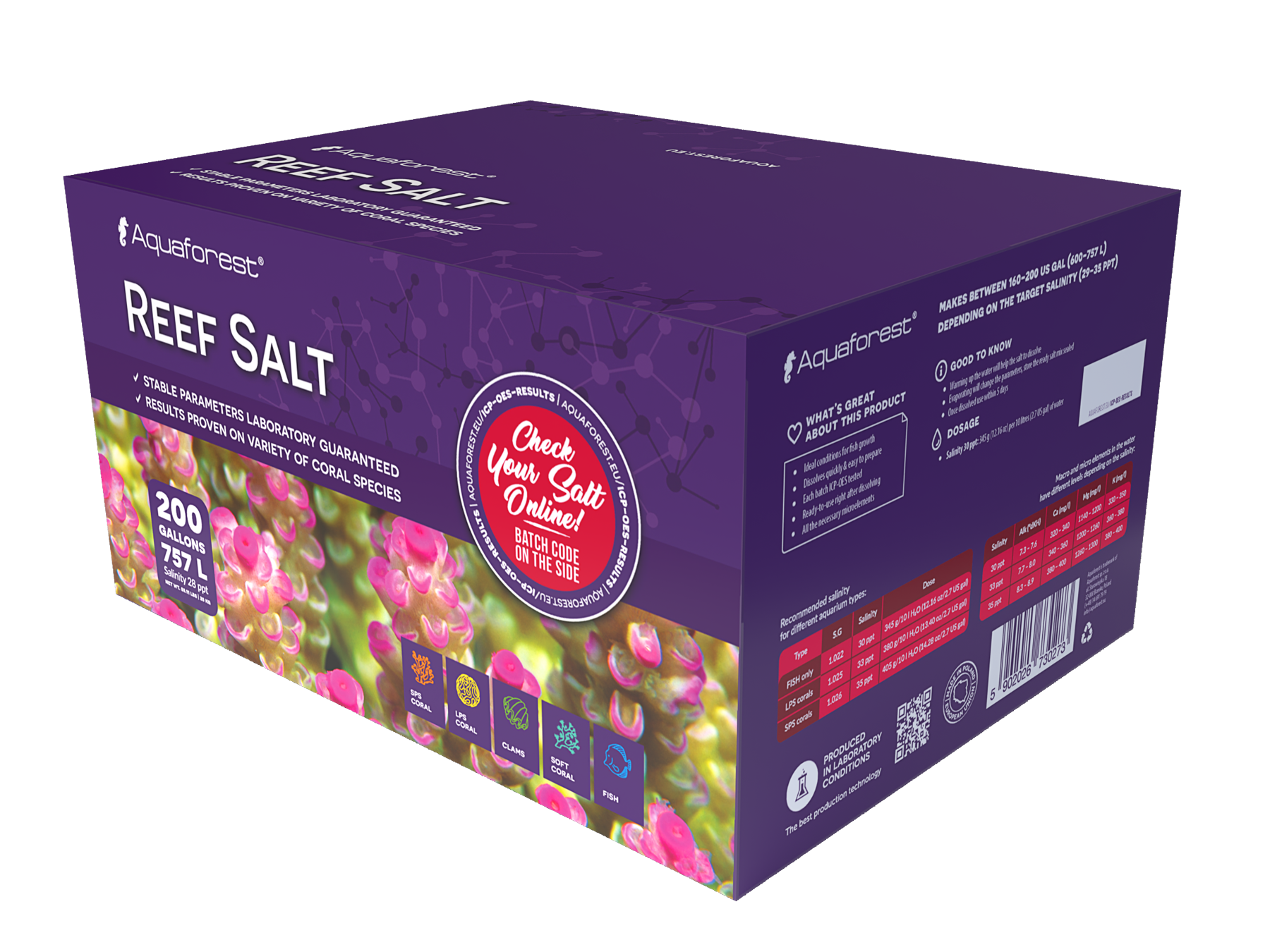 Fully synthetic marine salt created for aquacultured corals. This formula is designed to create the best conditions for marine animals. The micro-nutrients and macro-nutrients in Aquaforest Reef Salt fulfill corals’ demand for proper growth and pigmentation. After dissolving the salt, your freshly prepared marine water can be used immediately. The salt mix is enriched with amino acids and Vitamin C. The addition of Vitamin C encourages growth and has positive effects on the overall health of all aquarium inhabitants.